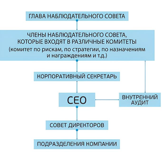 В Набсовете необходимо назначить секретаря, чья основная задача — взаимодействие между Набсоветом, СЕО и советом директоров. Это позволяет избежать прямого общения и обеспечивает независимость структур. При СЕО должен быть внутренний аудит — отдельный орган, который отчитывается корпоративному секретарю и Набсовету. Благодаря этому Наблюдательный совет видит не ту картинку, которую хочет показать менеджмент, а реальное состояние дел. Внутренний аудит независим от других подразделений компании.
